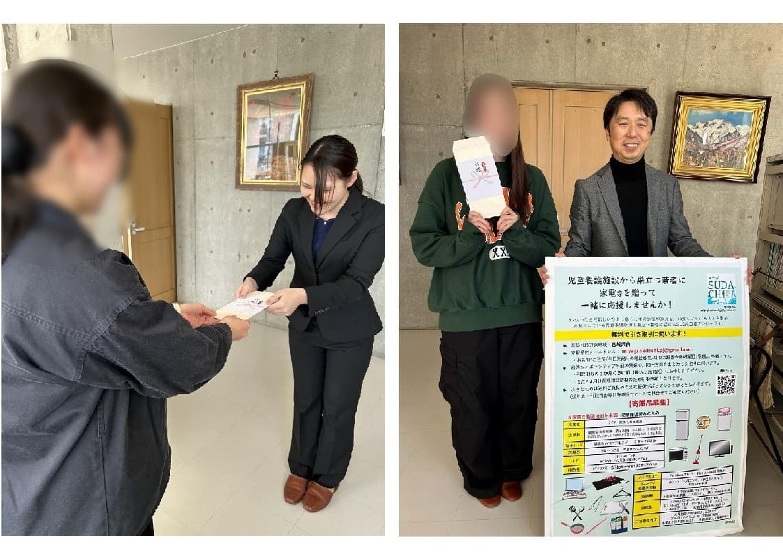 2025年3月1日の贈呈式でプラネットカナールとルフトハンザ航空グループ・Help Allianceから2人分の新品冷蔵庫・洗濯機を含め6家電が贈呈されました。